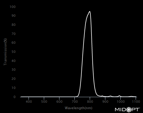 For use with 780-785nm IR illumination wavelengths, including LED and laser diode lighting, the narrow band design is ideal for use when ambient light conditions can be overwhelming. Commonly used in traffic control, security and license plate recognition applications.